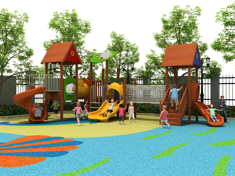Juego de exterior para niños en acero y plástico rotomoldeado